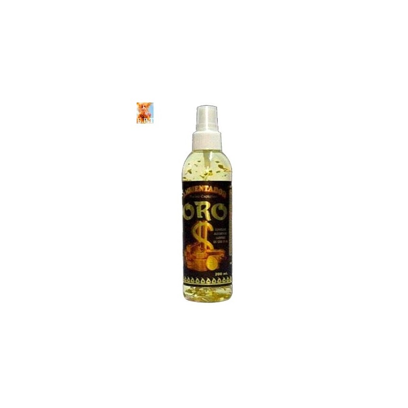 AMBIENTADOR CON LAMINAS DE ORO: Para la atraer la Suerte en Trabajo, Negocios y la Economía a su vida de 200 Ml. Recomendamos hacer algun ritual o poner algun Velon para el Dinero...